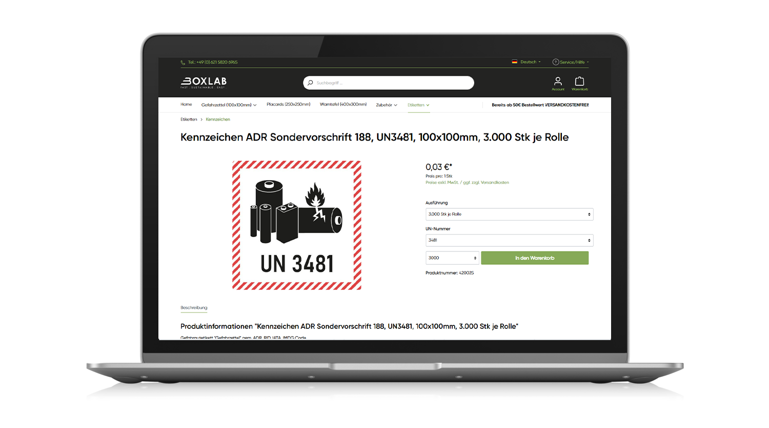 Wir freuen uns, mitteilen zu können, dass BOXLAB Services bereits auf die Änderung des Mindestmaßes und Layouts für die Markierung von Lithium- und Natriumbatterien im ADR 2025 reagiert hat. Wir haben Etiketten im neuen Format und Layout in unser Sortiment aufgenommen und bieten sie in verschiedenen Ausführungen an. Ob Sie Einzelblätter, 500er oder 3000er Rollen benötigen, wir haben die richtige Menge für Ihre Bedürfnisse. Alle unsere Gefahrgutetiketten sind seewasserresistent gemäß BS 5609 Sektion III, was bedeutet, dass sie auch in rauen Umgebungen, einschließlich Seetransporten, dauerhaft und gut sichtbar bleiben.