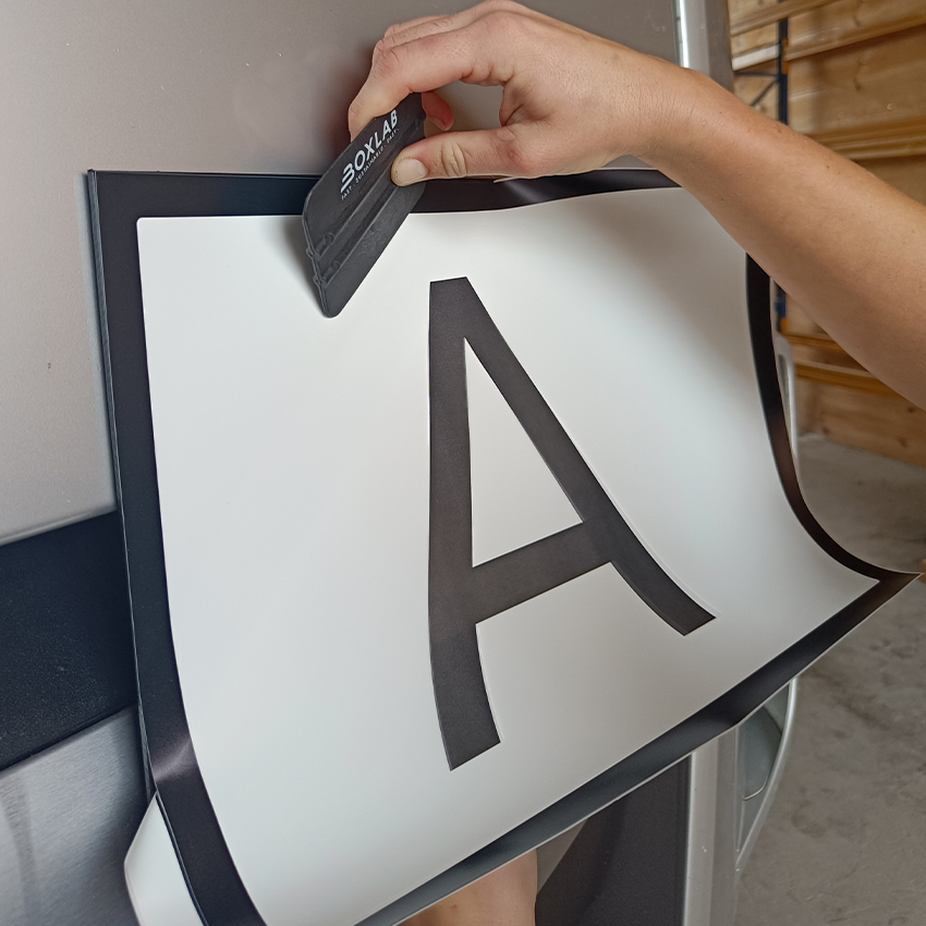 Apply the BOXLAB label bubble-free using a squeegee.