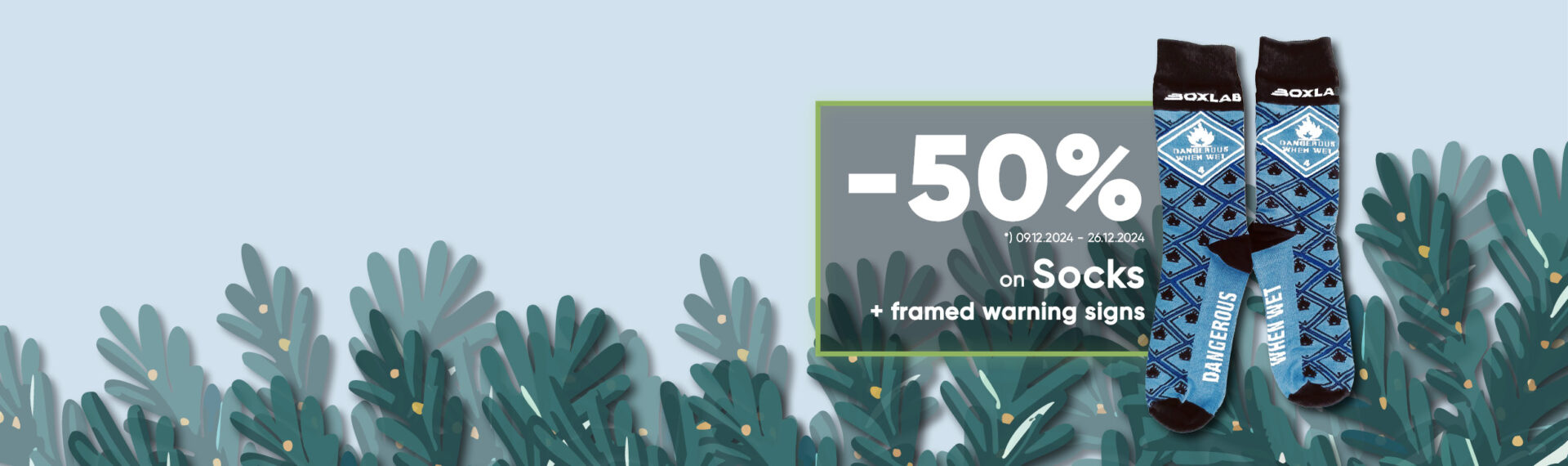 These limited edition products are unique and available for a short time. Make your Christmas season something special – with BOXLAB Hazard Line socks and framed warning signs that not only impress with their quality, but also with their extraordinary style.
