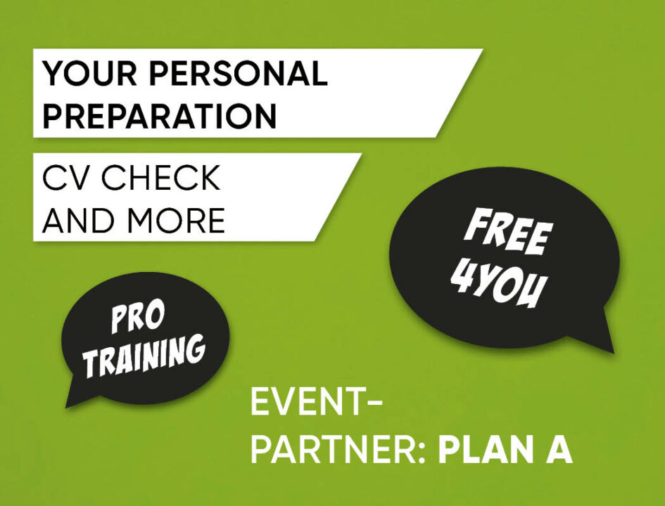 As part of the Job Barbecue, „PLAN A“ offers all participating young people free support in preparing for the Job Barbecue. From resume checks to individual career guidance to comprehensive advice – register for free and be optimally prepared for the big day at the fair.