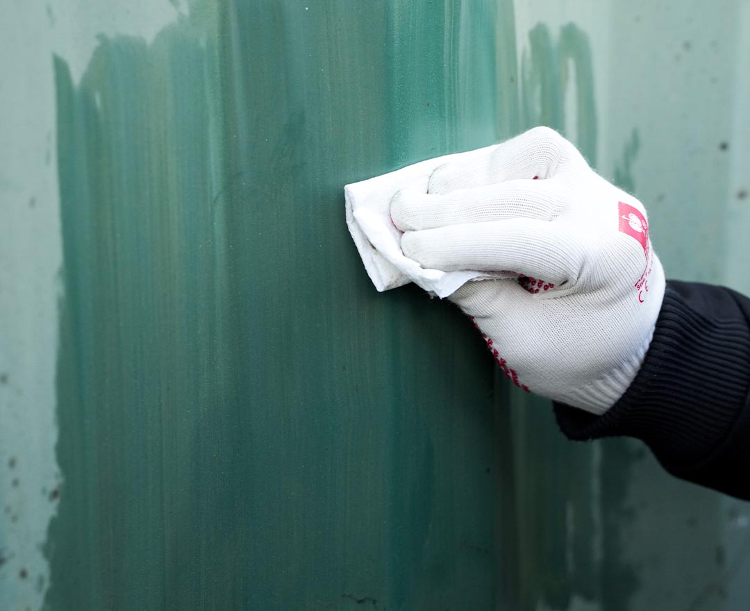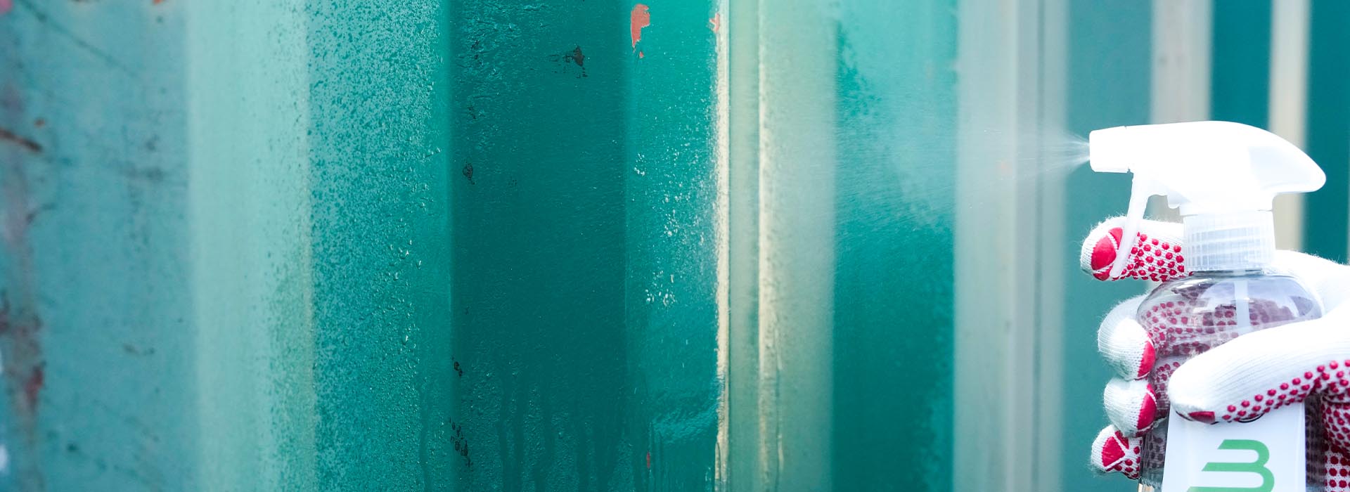 Ein Punkt, der von vielen vernachlässigt wird, tatsächlich aber von entscheidender Bedeutung für die Rechtskonformität des angebrachten Placards ist. Um seine zertifizierte Haftfähigkeit entfalten zu können, benötigt ein Placard einen entsprechend sauberen Untergrund. Andernfalls klebt das Placard nicht auf dem entsprechenden Untergrund, sondern lediglich auf Schmutz und Staub. Dadurch verliert ein Placard nicht nur rechtlich gesehen seine Seewasserbeständigkeit, sondern auch die nötige Klebekraft, um dauerhaft zu haften. Die Folge sind abfallende Placards bei längerem Transport, Regen oder anderen witterungsbedingten Einflüssen. Um das zu verhindern, haben wir einen speziellen, schnell verflüchtigenden Reiniger auf BIO-Alkohol Basis entwickelt.