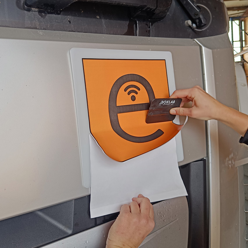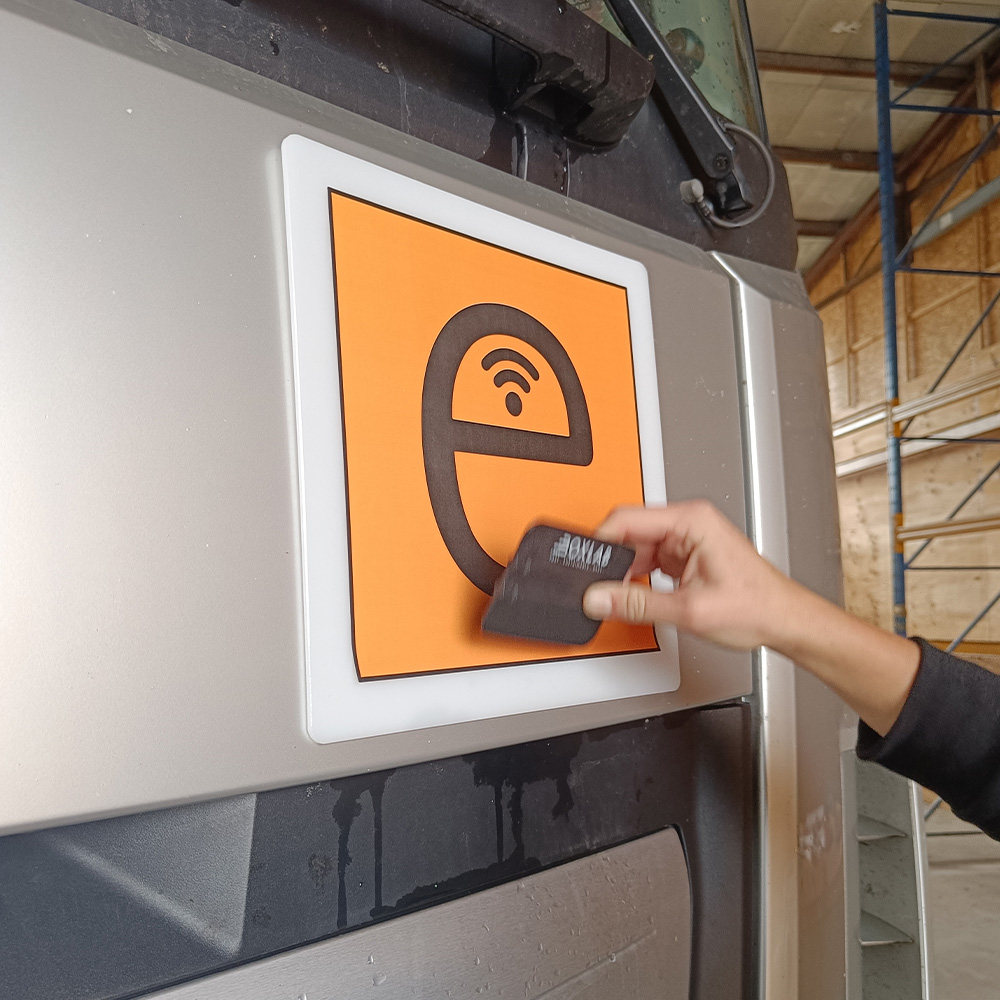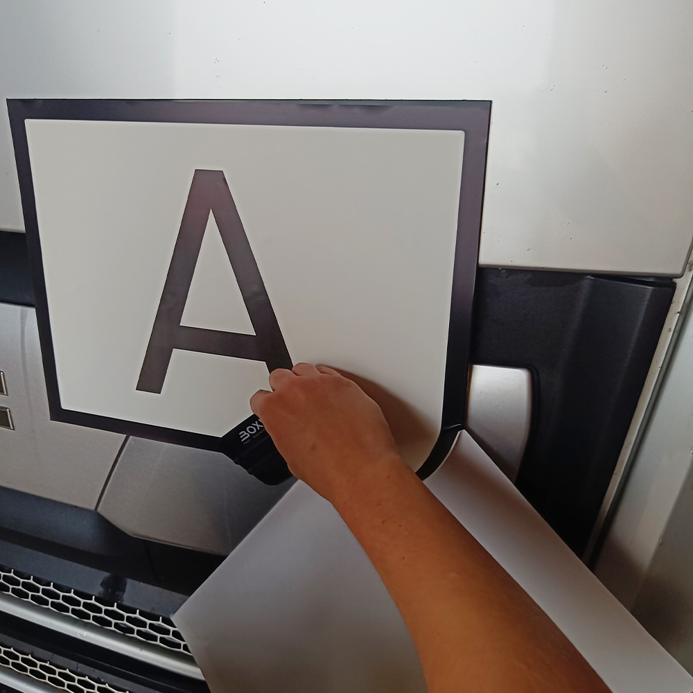 Das Etikett wird mithilfe eines Rakels sauber und blasenfrei auf die PE-Tafel aufgebracht, wodurch eine sichere und professionelle Haftung gewährleistet wird. Bei Bedarf lässt sich das Etikett problemlos und rückstandsfrei entfernen. Falls erforderlich, kann ein Sicherheitsschaber genutzt werden, um eine erste Angriffsfläche zu schaffen, ohne die Oberfläche der Platte zu beschädigen.