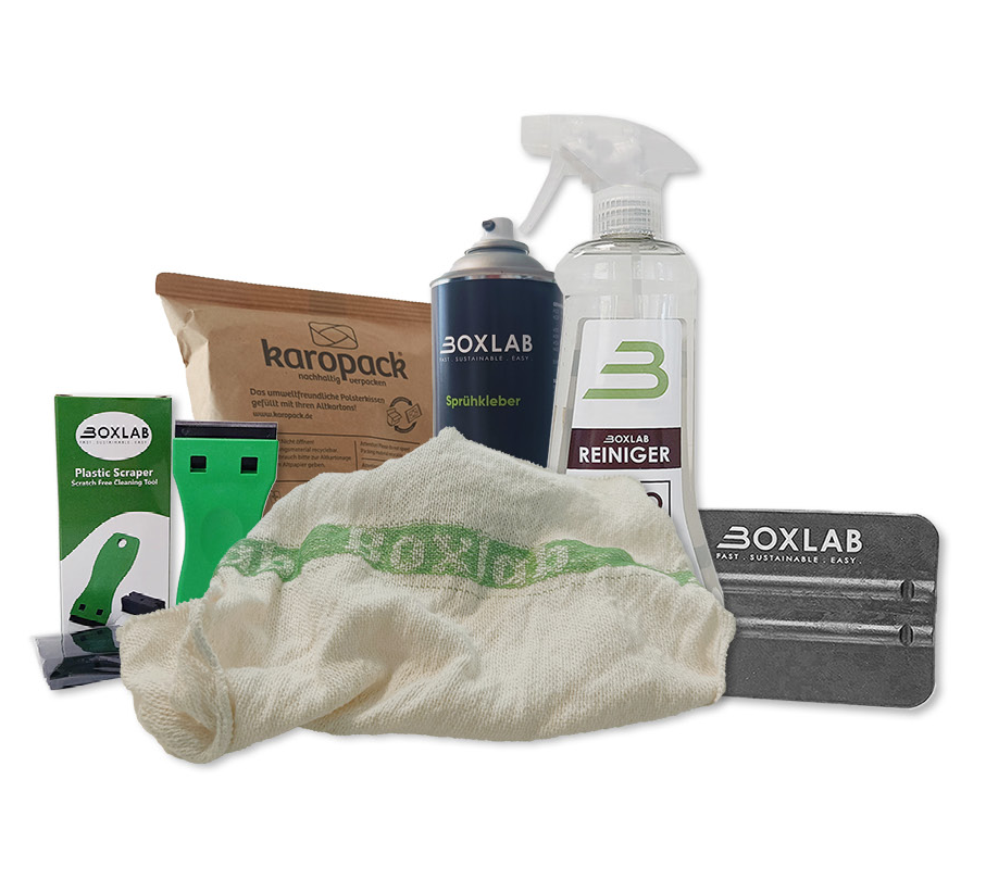 Unsere PE-Tafeln bieten eine robuste und rückstandsfreie Oberfläche für die sichere Etikettierung. Das BOXLAB Maschinenputztuch sorgt in Kombination mit dem BOXLAB BIO-Reiniger für eine gründliche Reinigung, um eine optimale Haftung der Etiketten zu gewährleisten. Für professionelle Anwendungen bieten wir zudem Sprühkleber, der eine zuverlässige Befestigung ermöglicht.